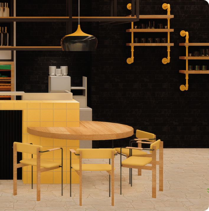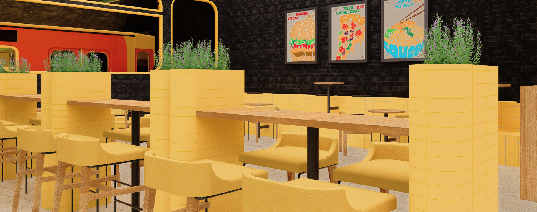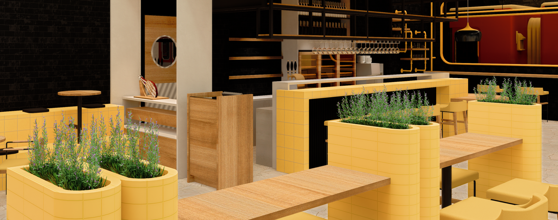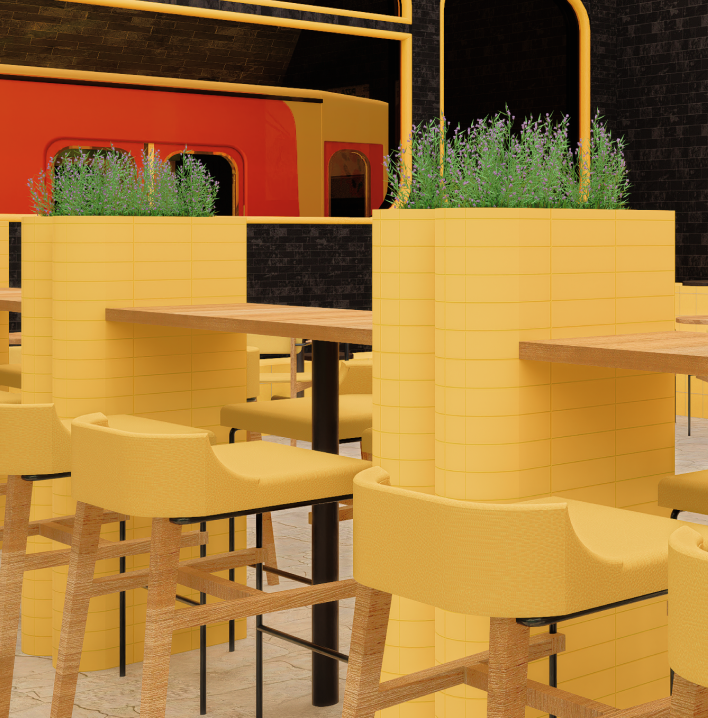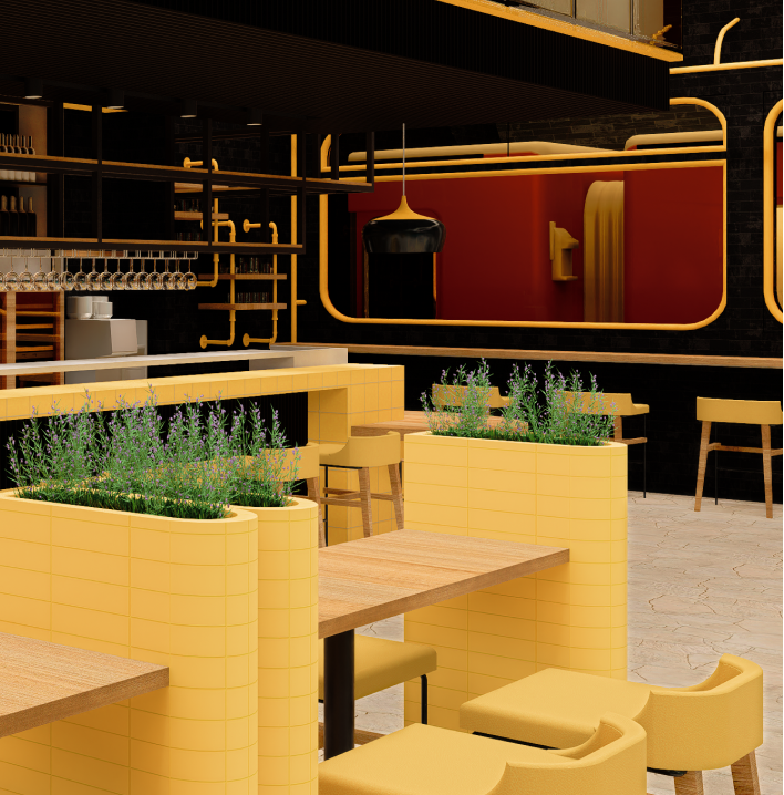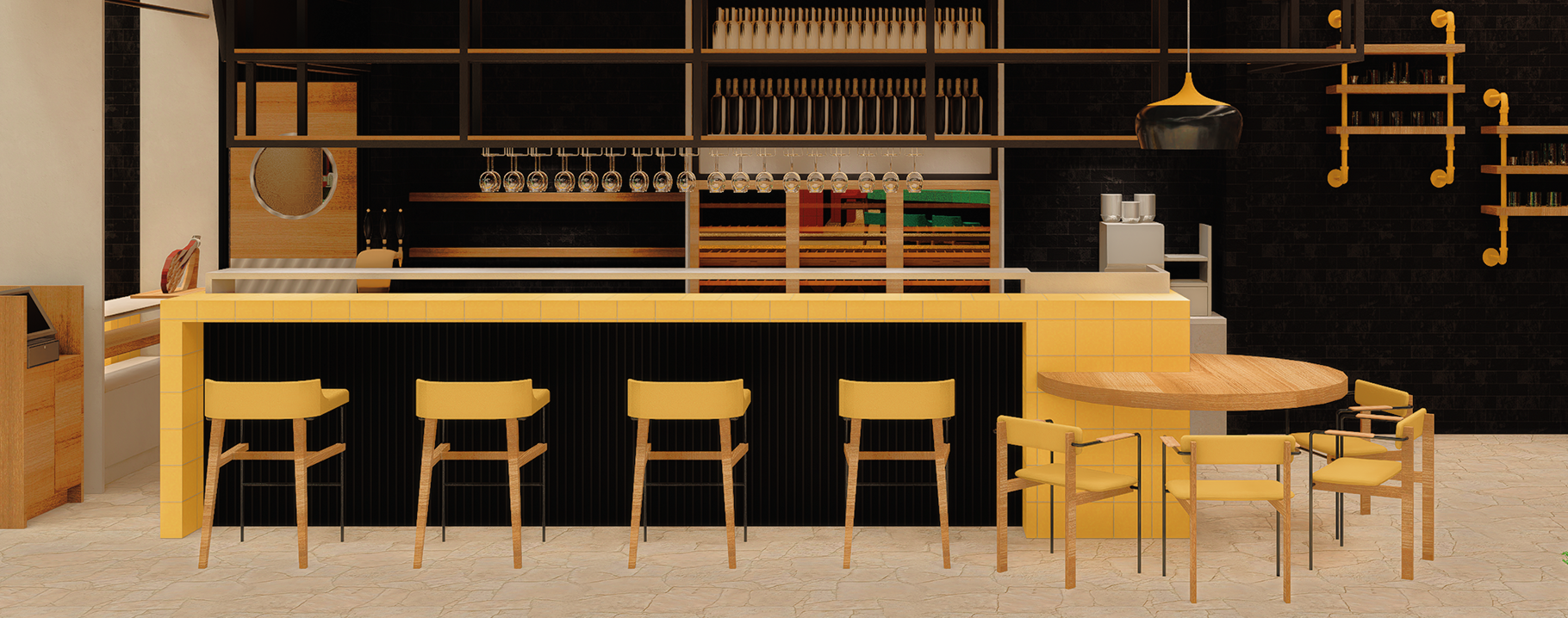 Барный стол у стены имеет 5 посадочных мест. Общая вместимость ресторана — 50.