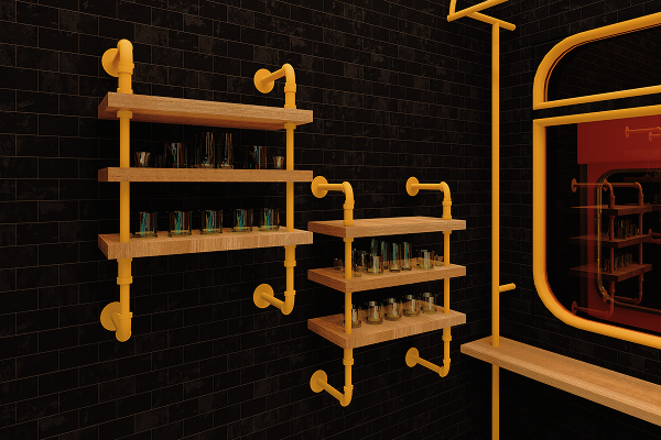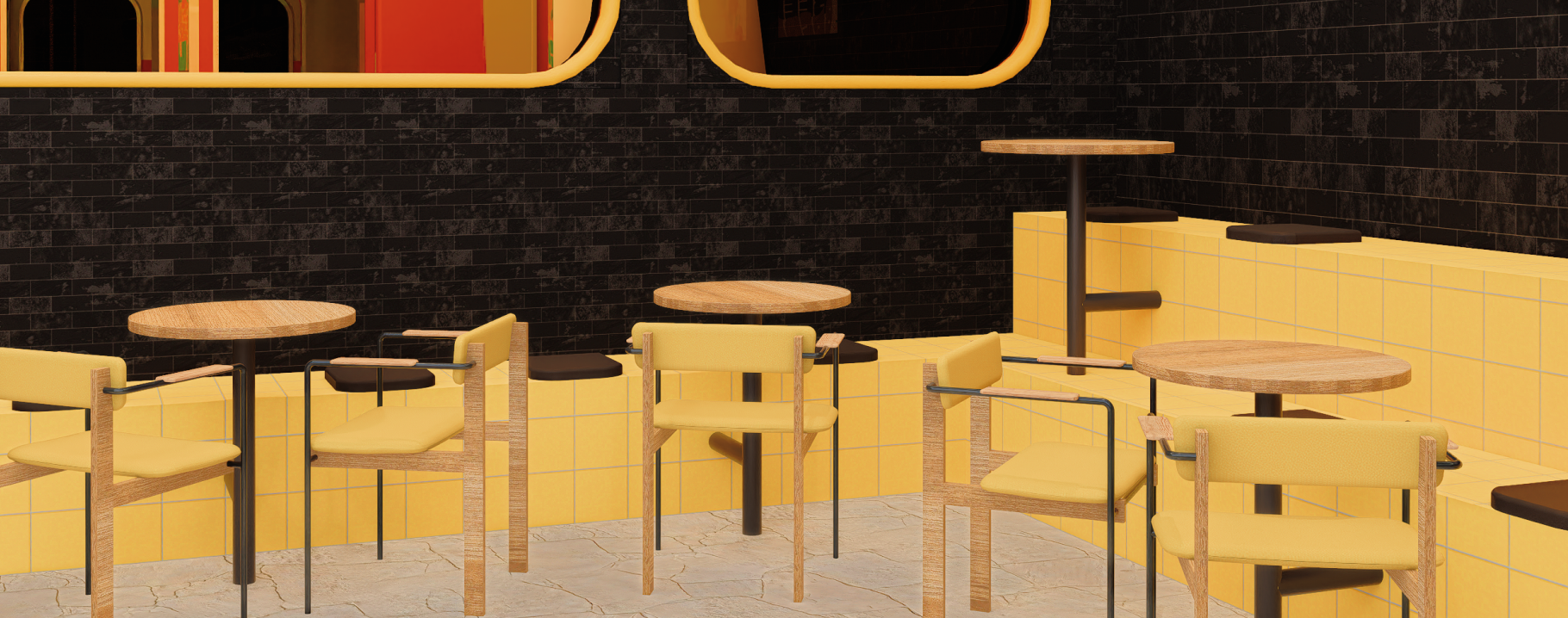 Основу фирменного стиля restro составляют поручни, окна и другие элементы, характерные для метро.